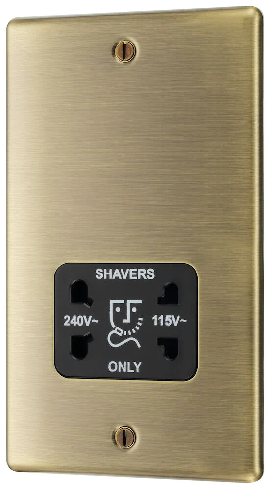 The NAB20B is a shaver socket from the BG Nexus Metal range, finished in antique brass with black inserts. This range of switches and sockets has been designed with a modern, slim profile and has a lightly lacquered surface to reduce fingerprint marks.