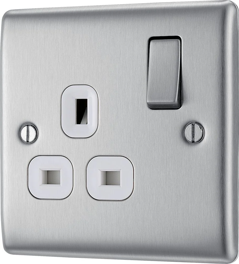 The NBS21W is a 13A single socket from the BG Nexus Metal range, finished in brushed steel with white inserts. This range of switches and sockets has been designed with a modern, slim profile and has a lightly lacquered surface to reduce fingerprint marks. The BG Nexus Metal range of switches and sockets comes with colour coded screws and has a full grid system to match.