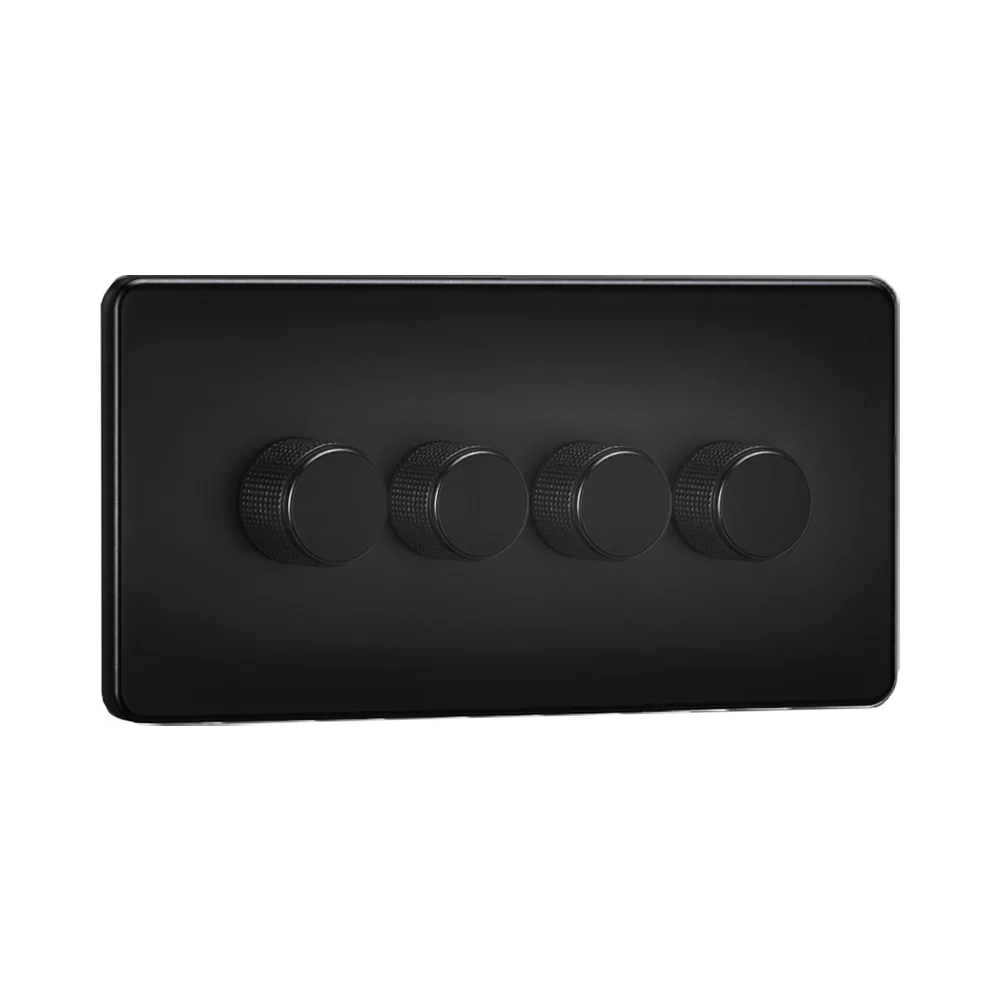 The Knightsbridge 4-gang intelligent dimmer is designed for properties requiring control of several lighting circuits from a single point. Its screwless matt black finish delivers a refined, professional appearance that suits both contemporary interiors and high-end refurbishments.